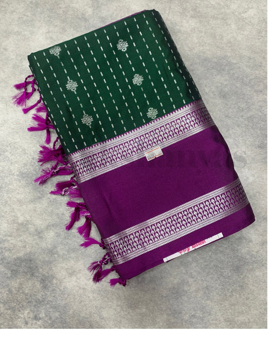 Green Colour Soft Silk Saree with Magenta Rettai Pettu Border