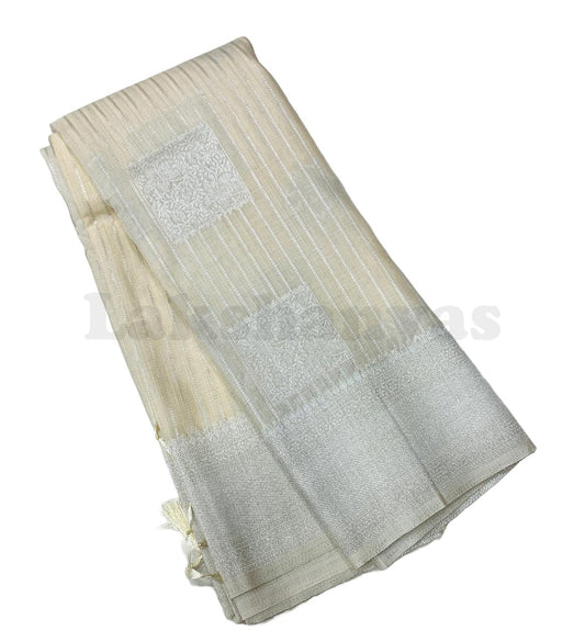 Off White Colour Linen Silk Saree with Sliver Zari Border