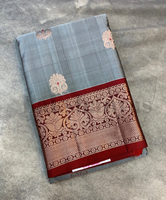 Grey Pure Kanjivaram Silk Saree with Maroon border