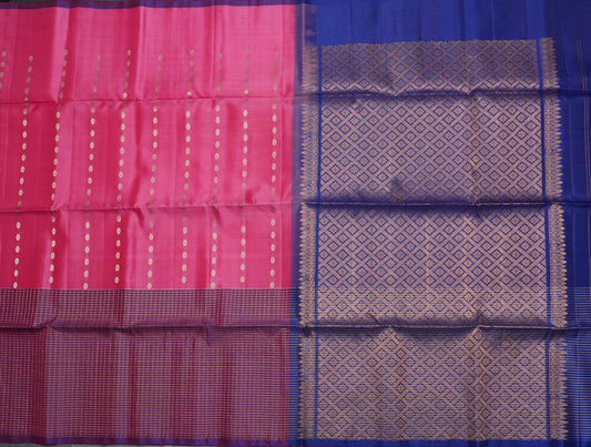 Kanjivaram Pink Silk Saree with Blue Checked Border