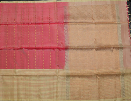 Kanjivaram Pink Silk Saree with Cream Checked Border