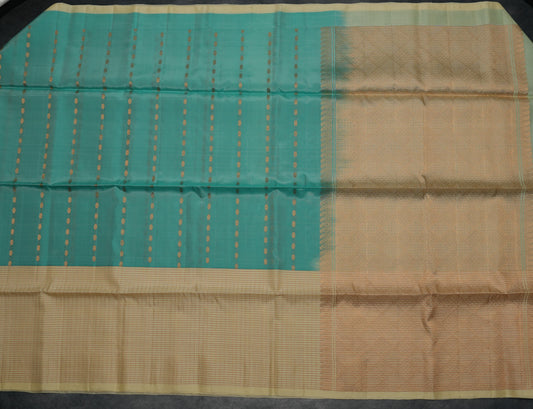 Kanjivaram Teal Blue Silk Saree with Cream Checked Border
