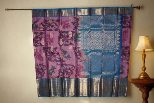 Peacock/Mayil Kaluthu Silk Mark Certified Pure Silk saree with Mango meenakari motif
