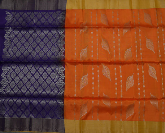 Kanjivaram Orange Soft Silk Saree with Blue Zari Border