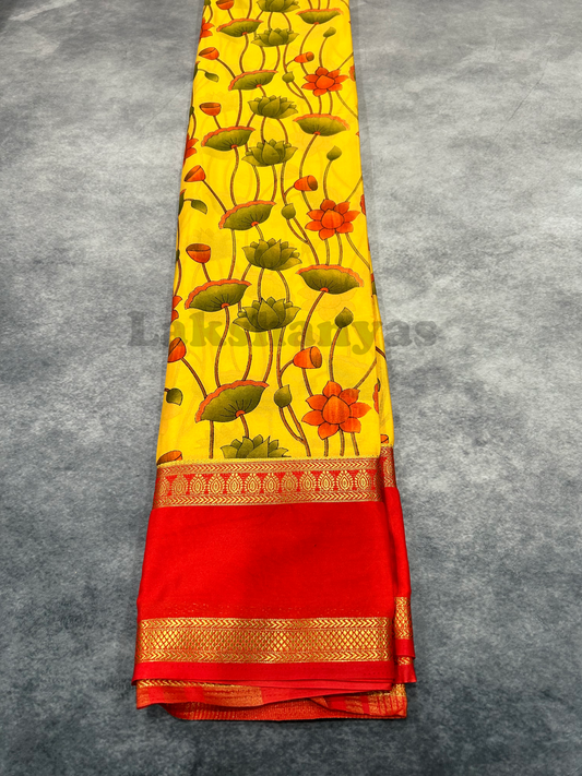 Yellow Floral Digital Printed Mysore Crepe Saree