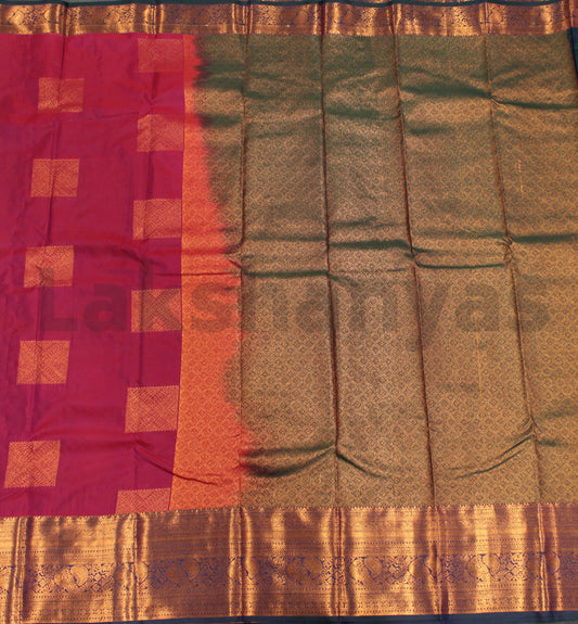 Green Semi Silk Saree with Maroon Peacock Border