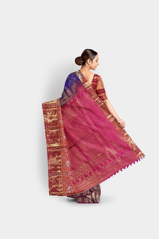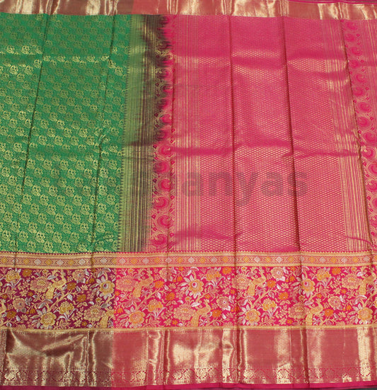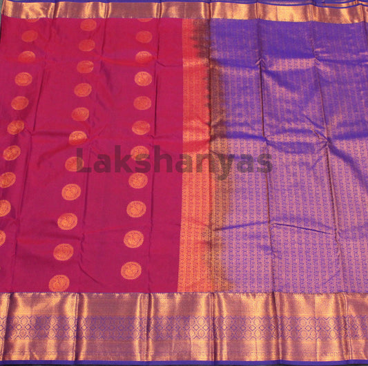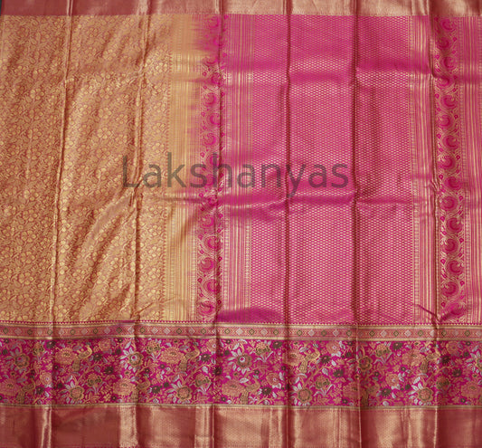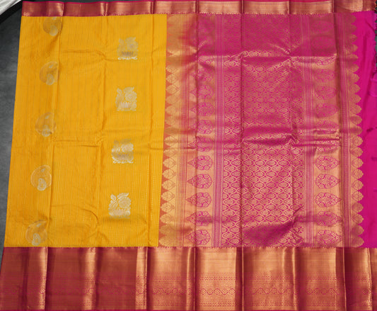 Lakshadeepam Yellow Semi Silk Saree with Rani Pink Border
