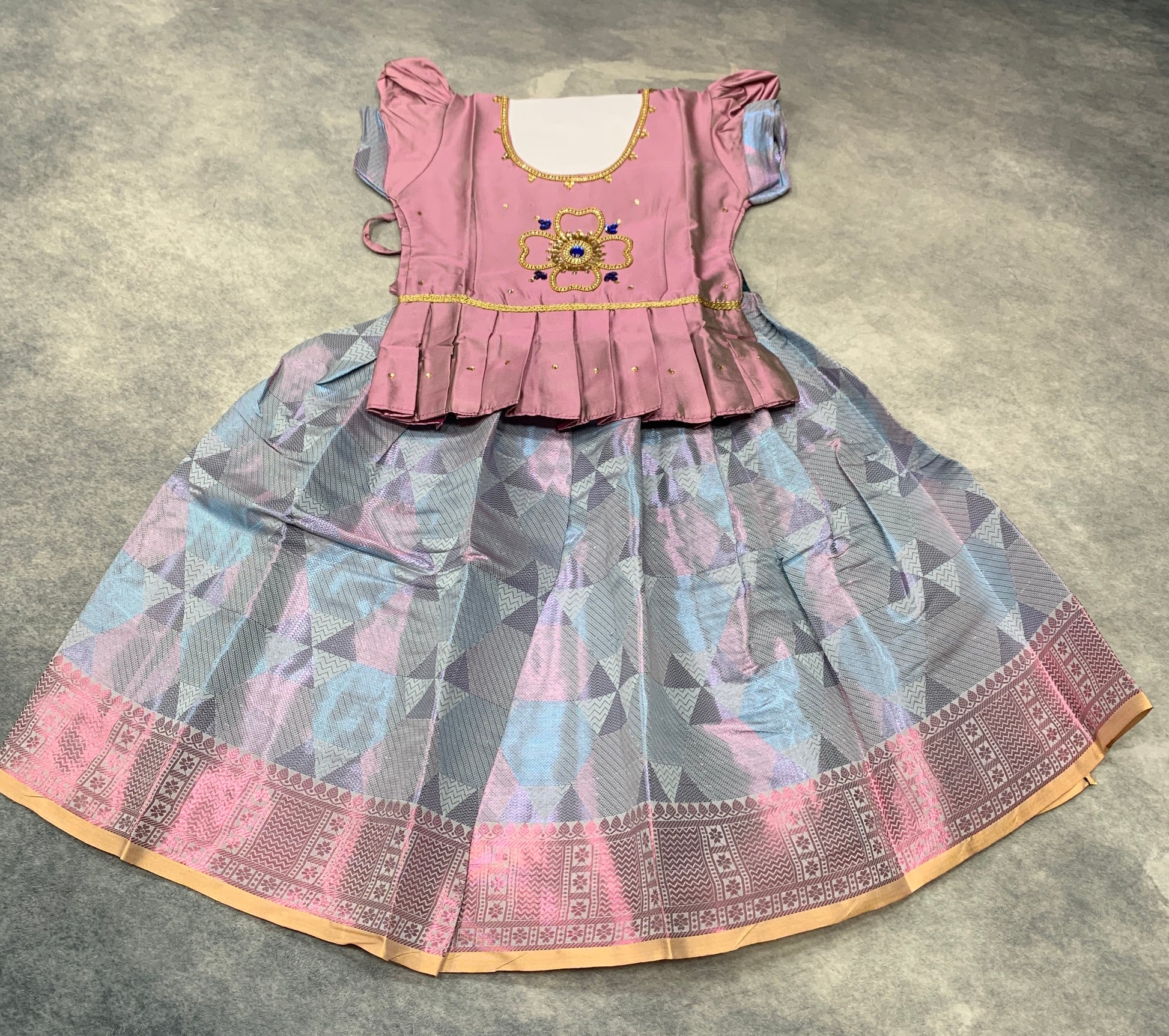 Ready To Wear Pavadai Multi Colour with Mauve Colour Blouse